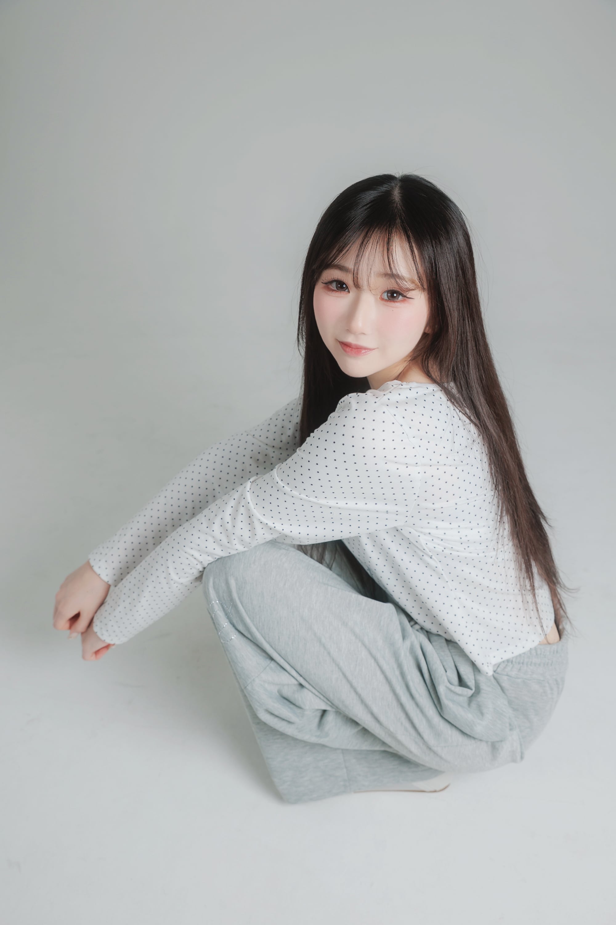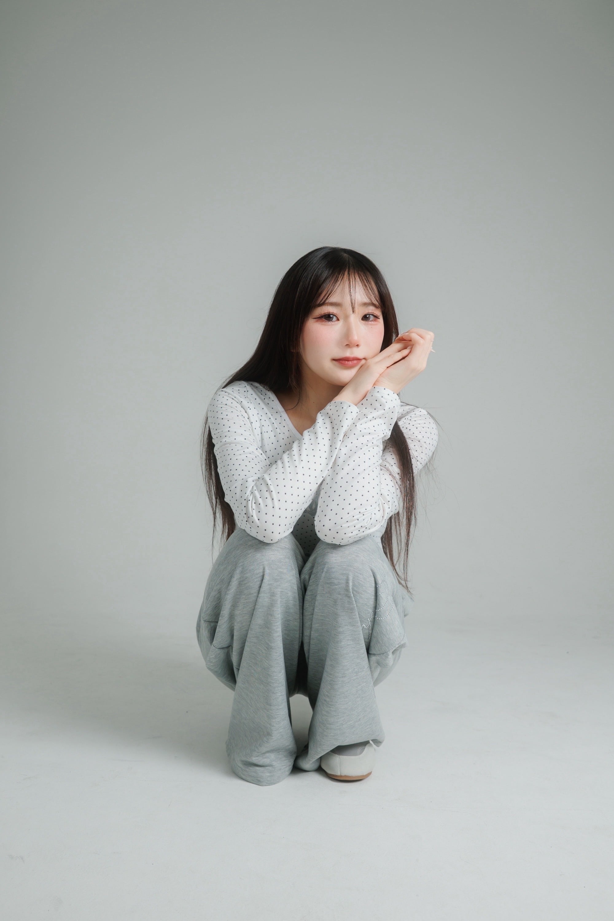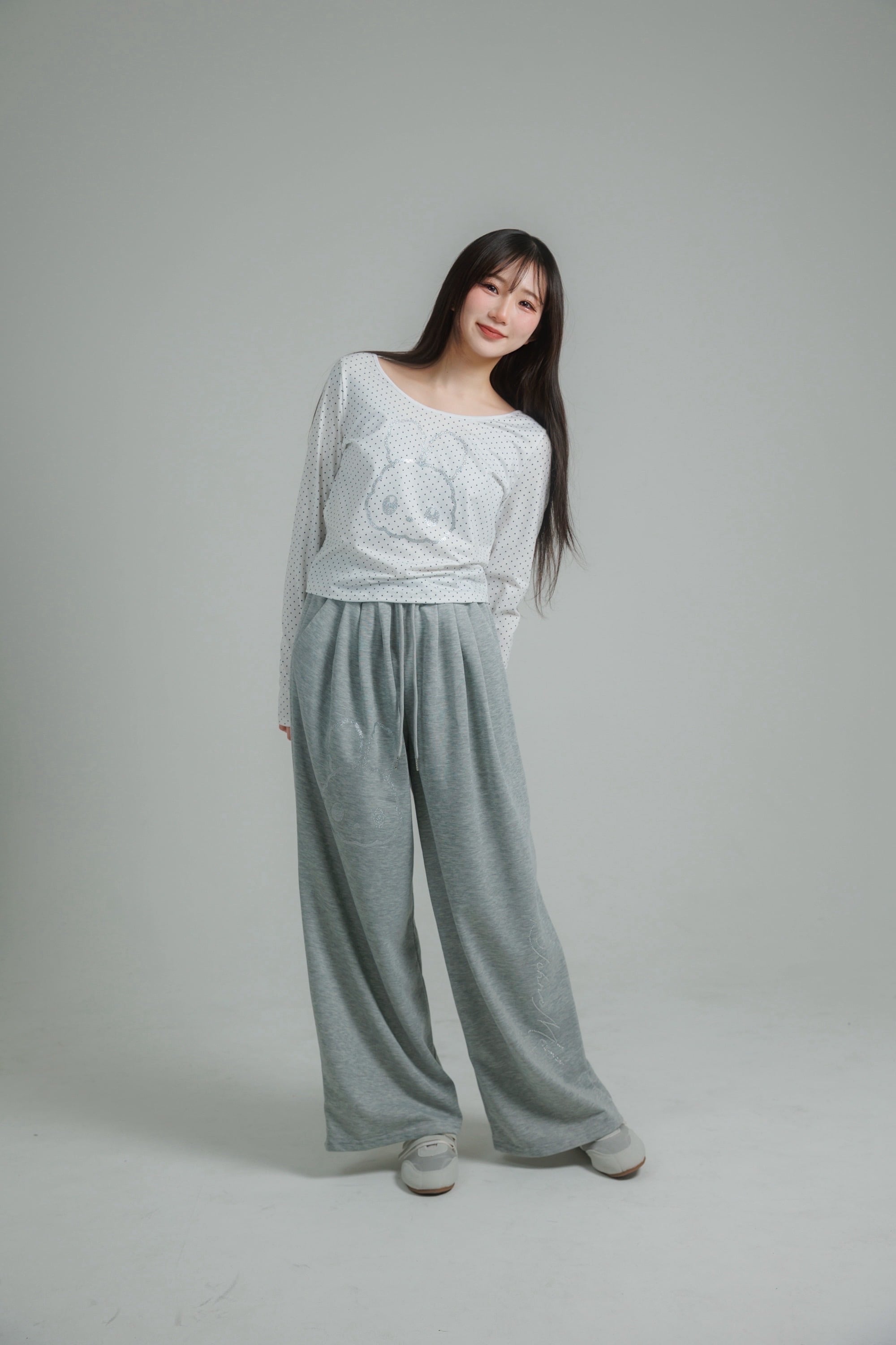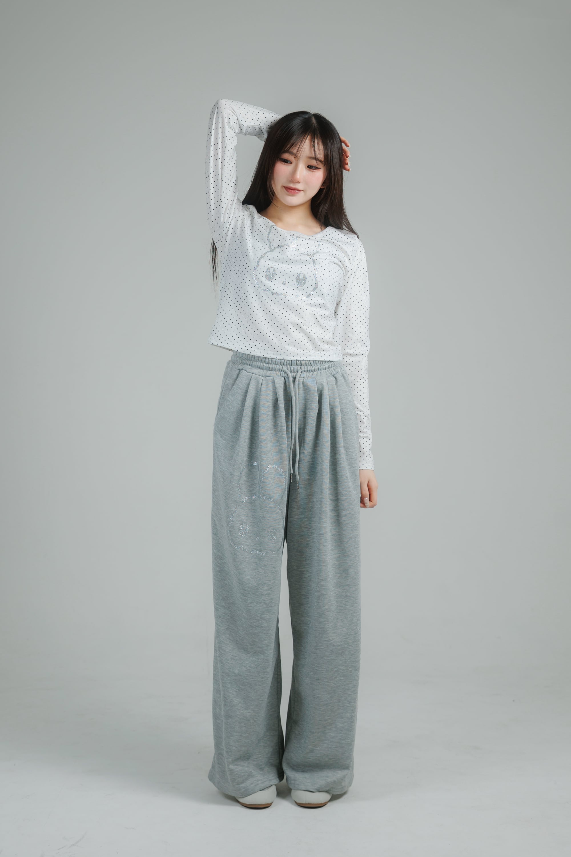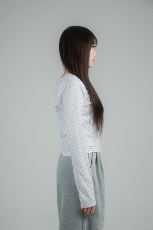 繊細なドット柄に、きらっと輝くグリッターのうさぎモチーフを重ねたロングスリーブトップス。