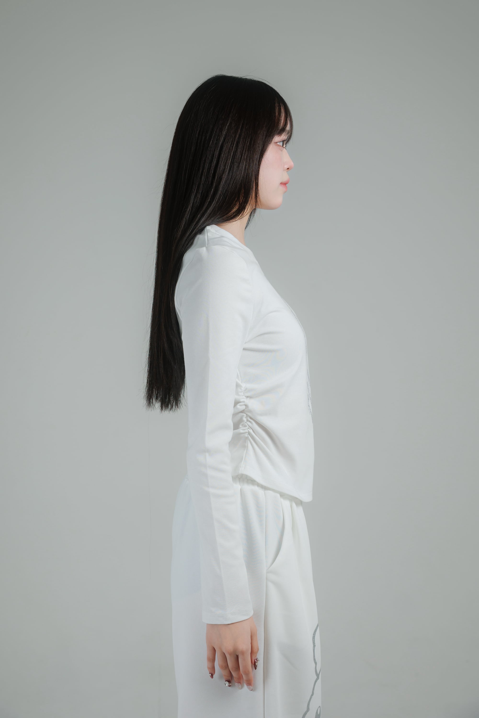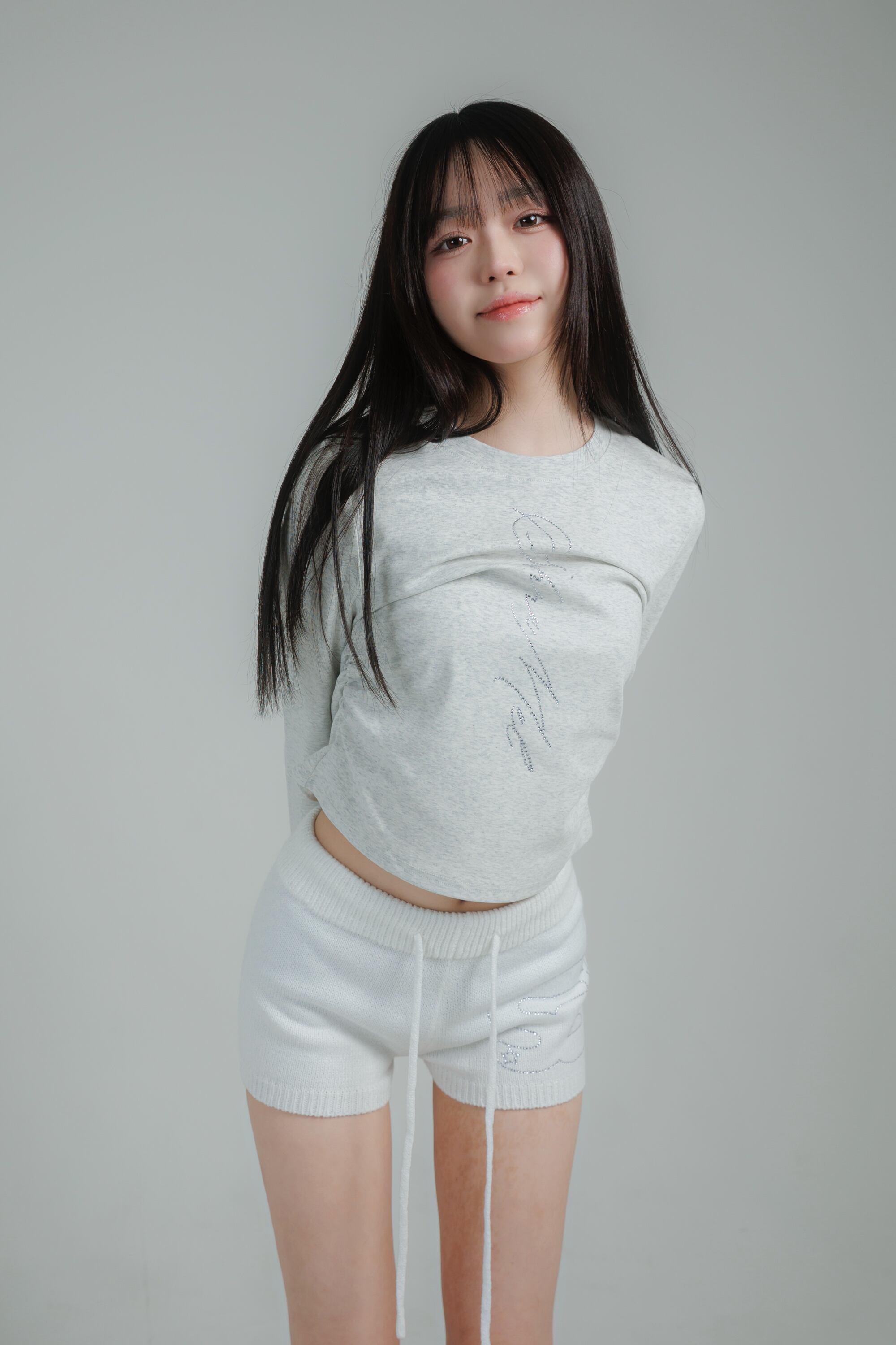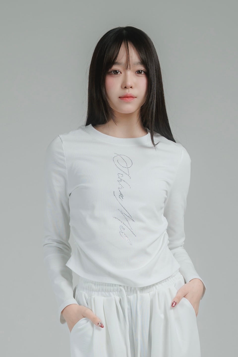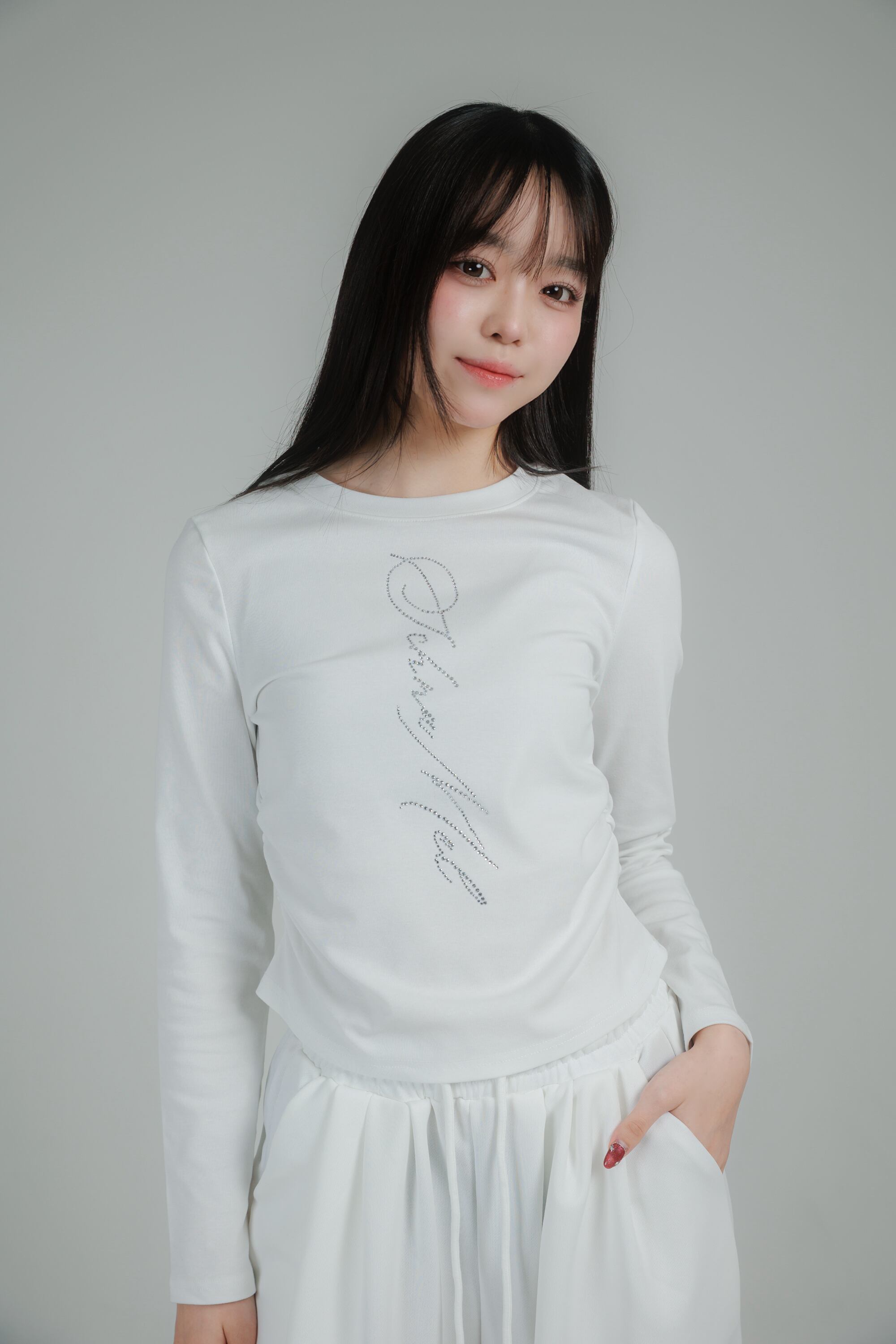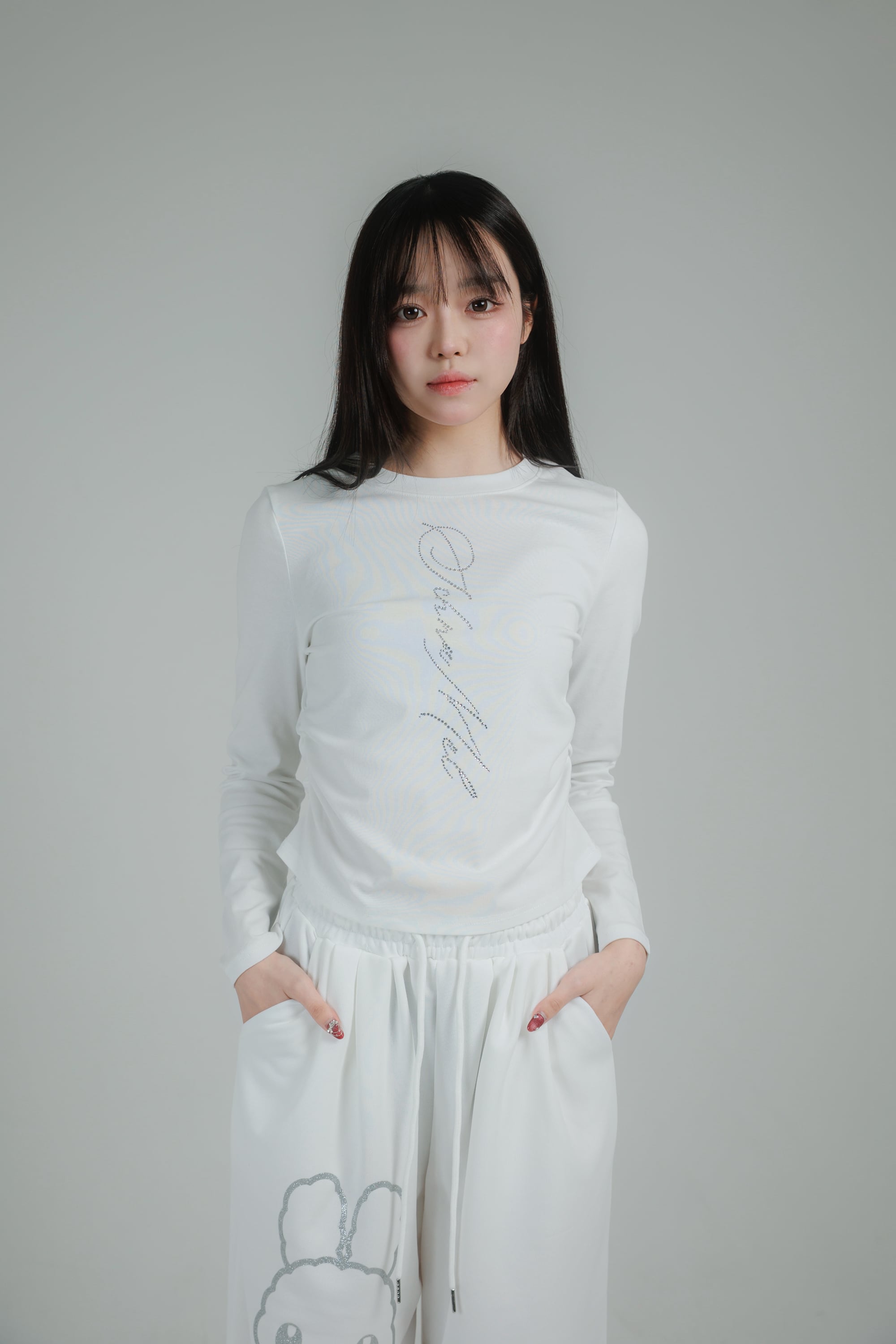 schnamelのラインストーンであしらった、ミニマルながら存在感のあるロングスリーブトップス。