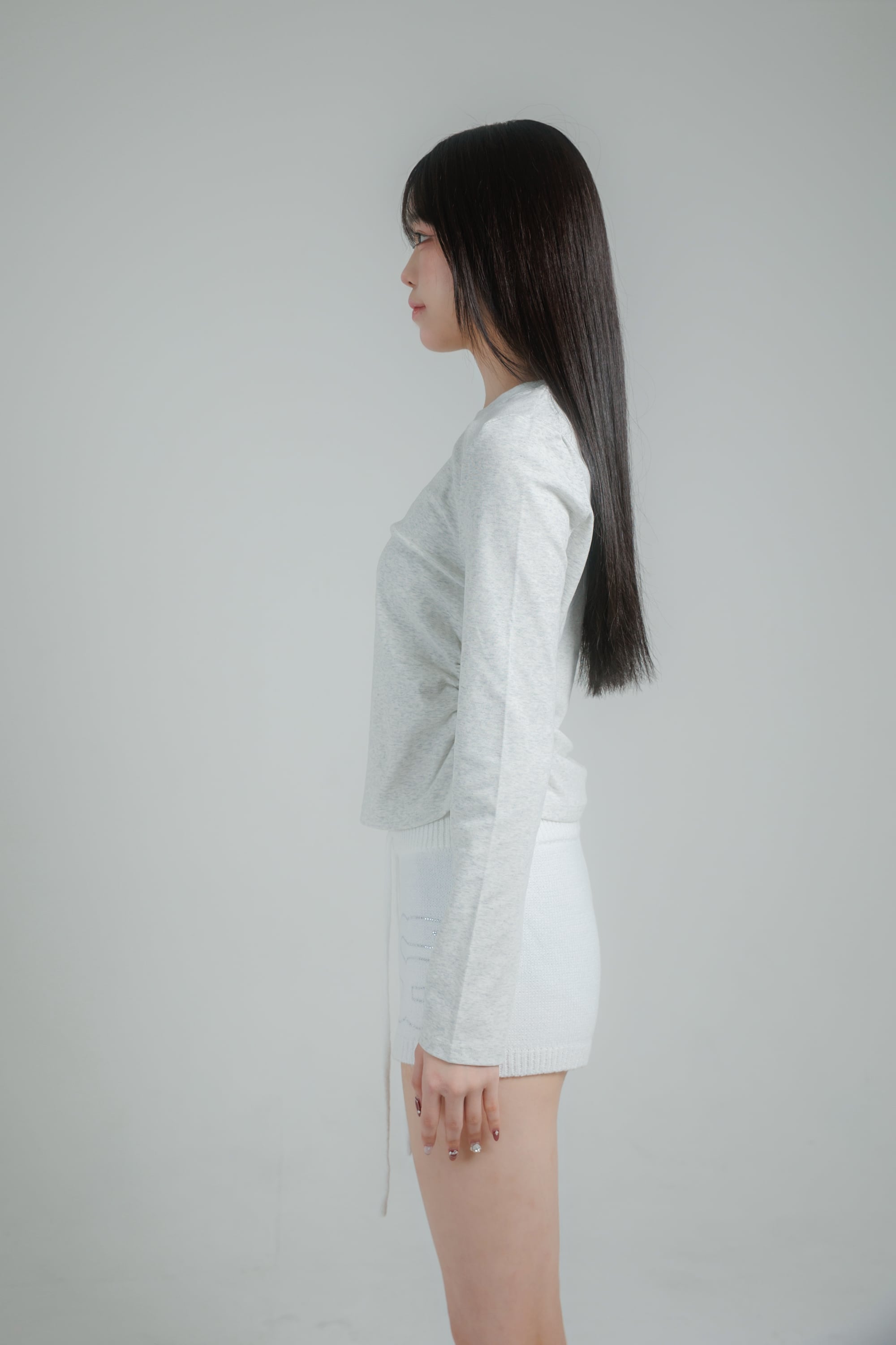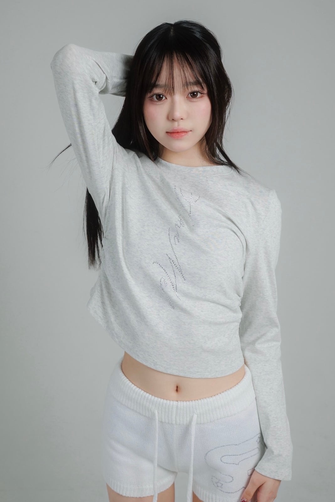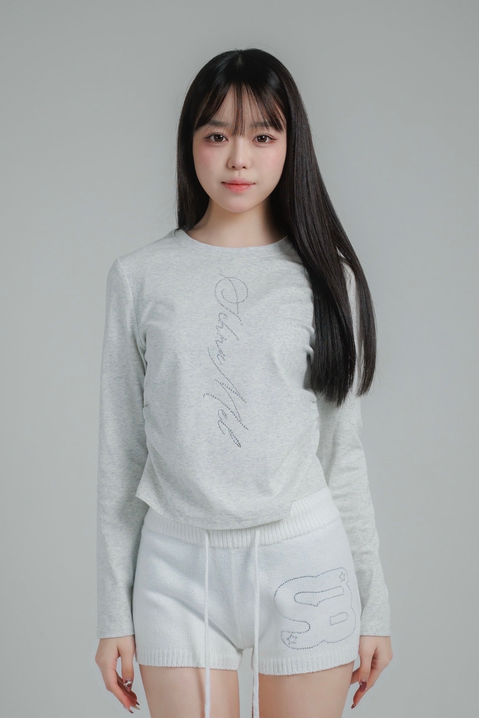 schnamelのラインストーンであしらった、ミニマルながら存在感のあるロングスリーブトップス。