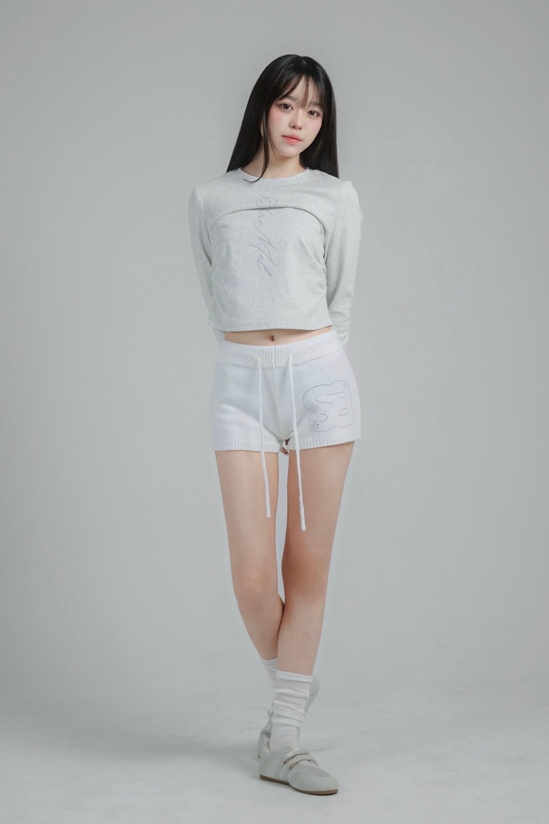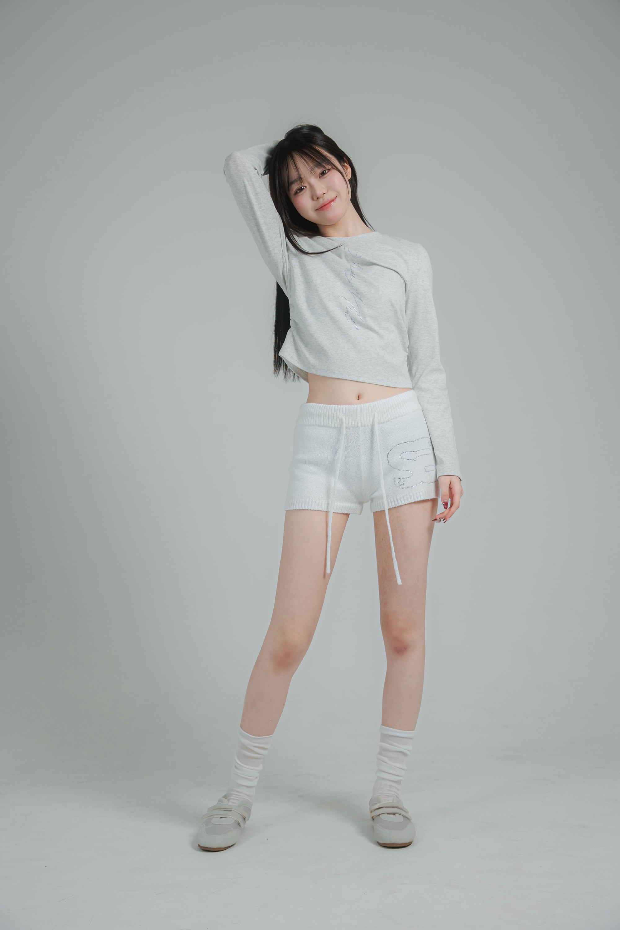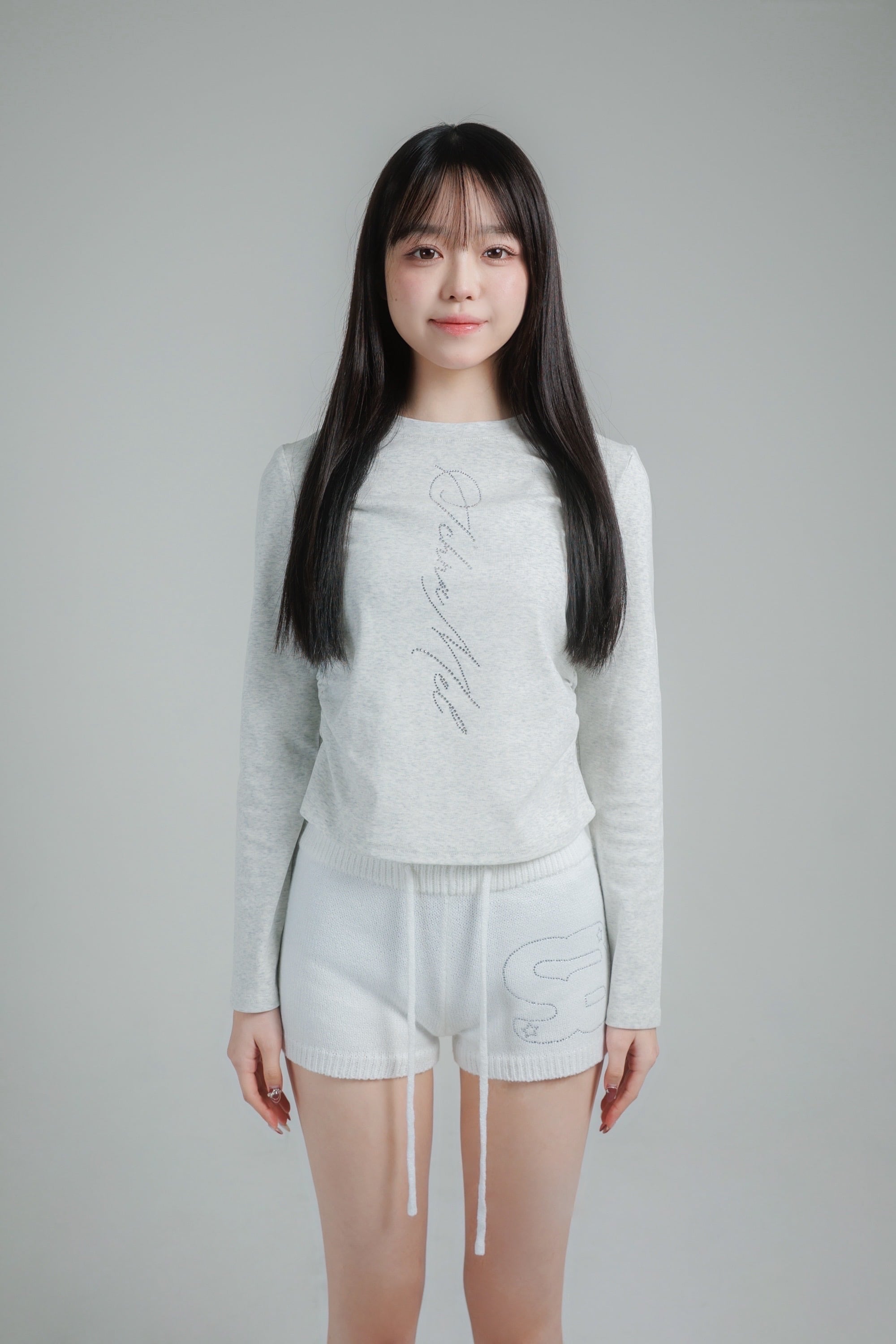 schnamelのラインストーンであしらった、ミニマルながら存在感のあるロングスリーブトップス。