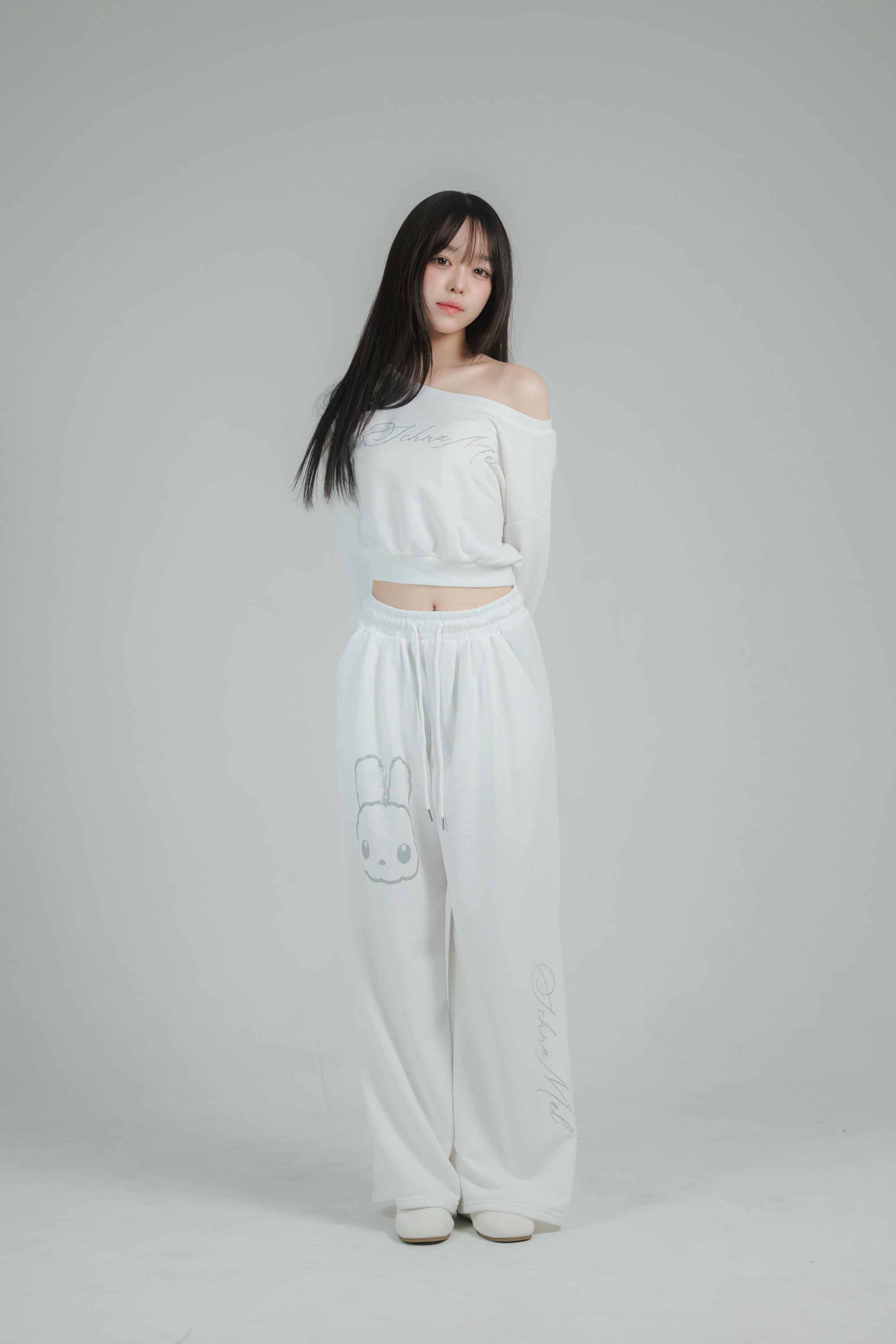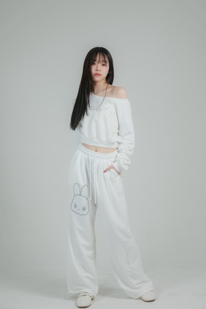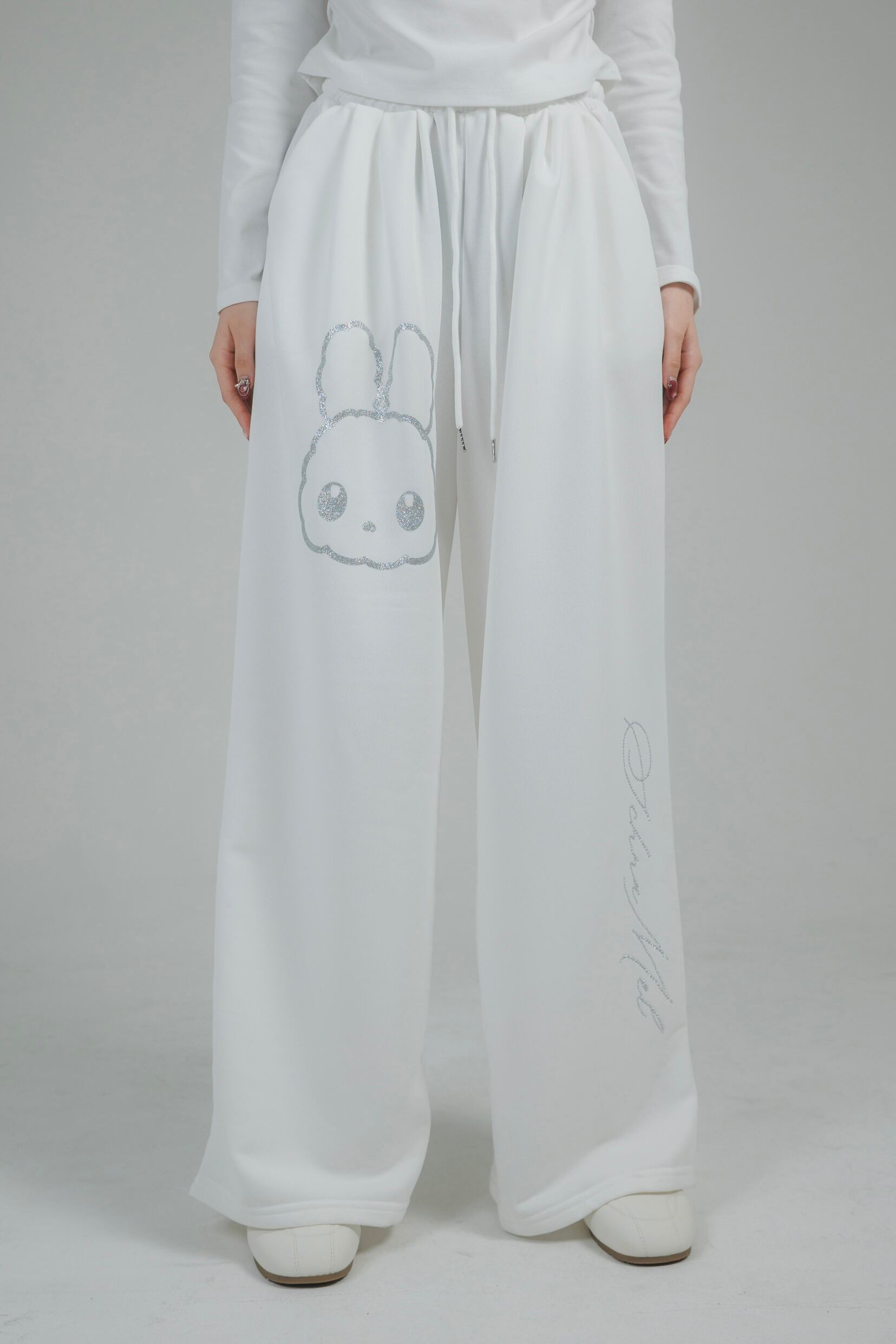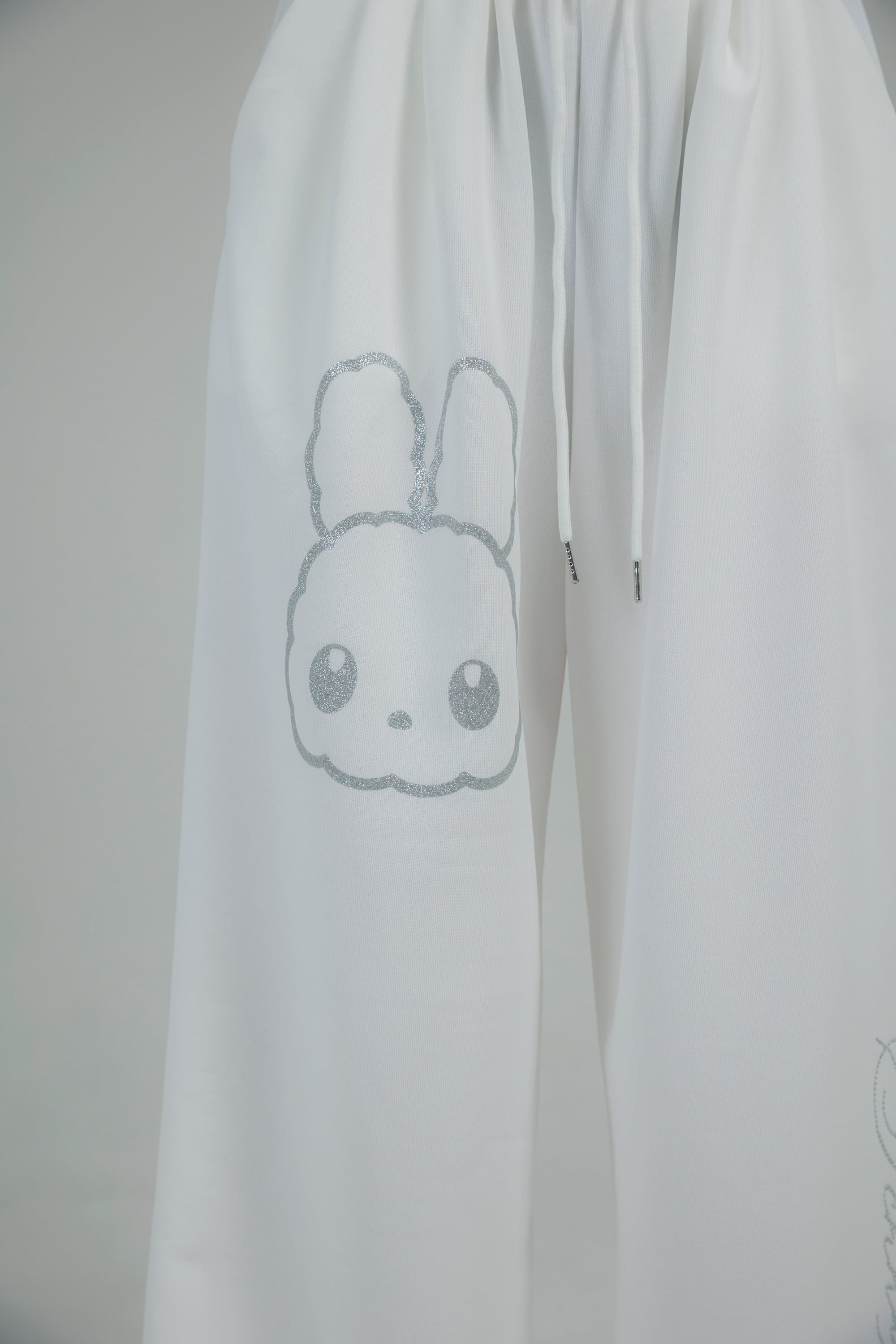 うさぎはグリッター、ロゴはラインストーンでアクセントをプラス。