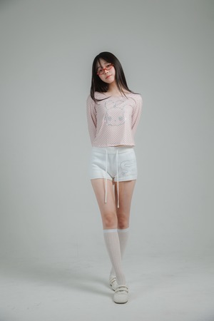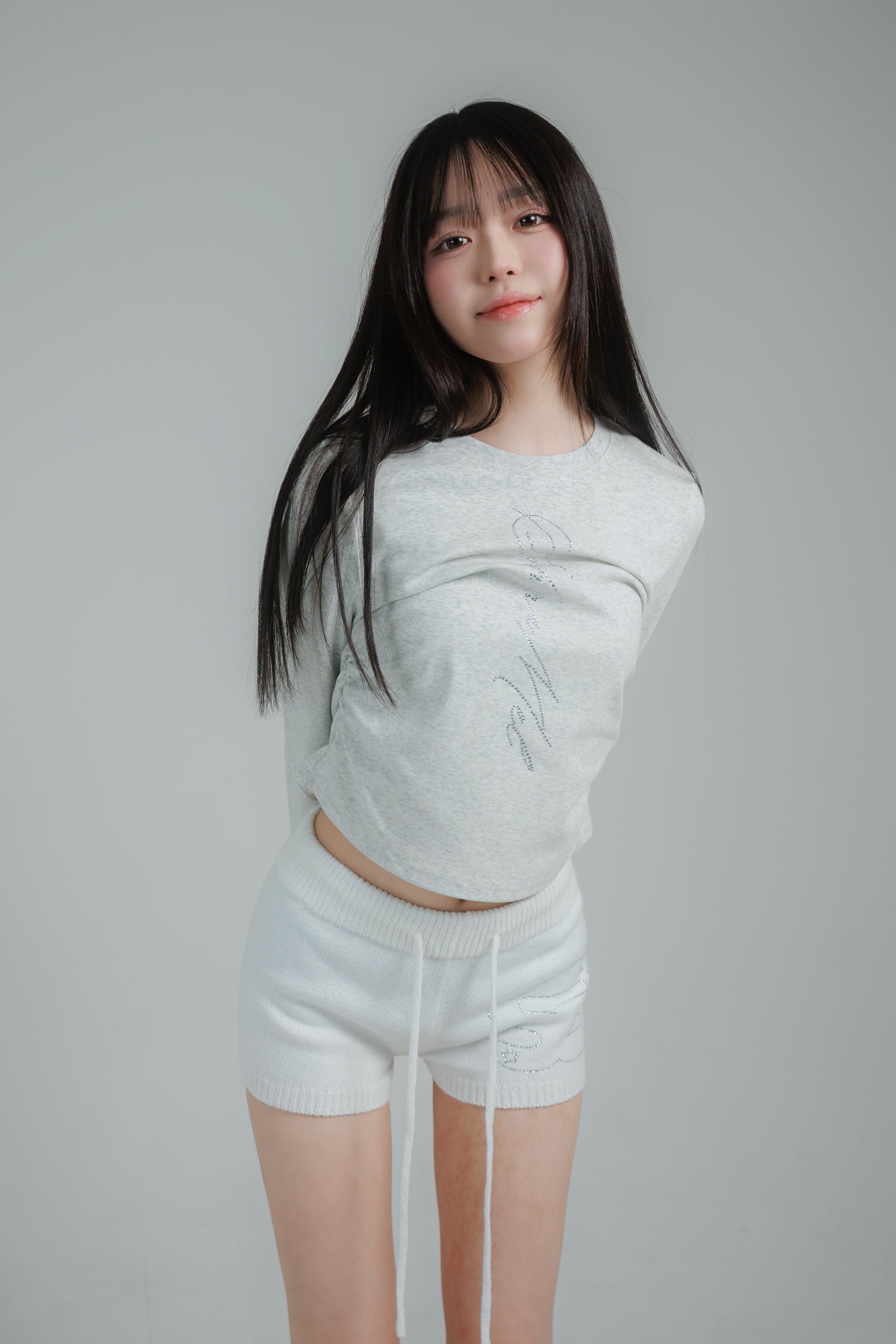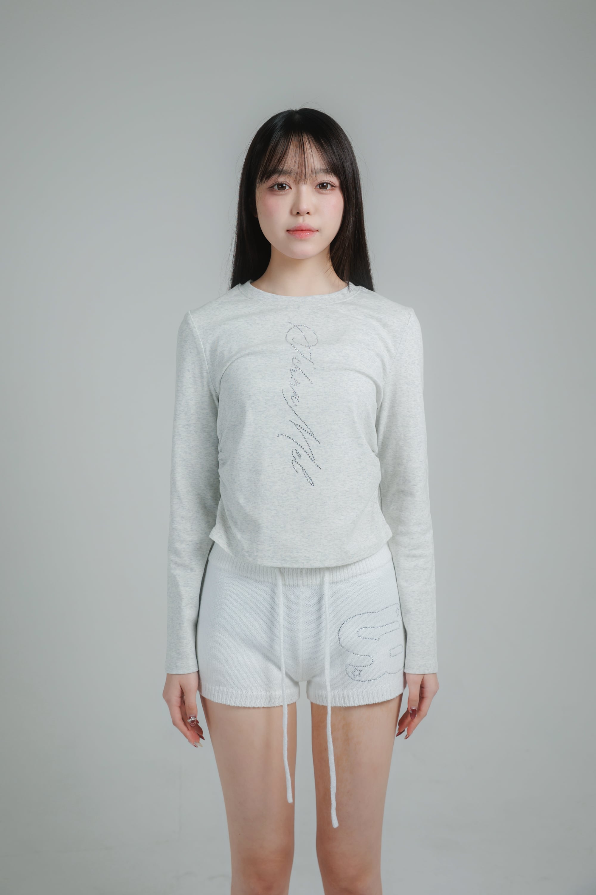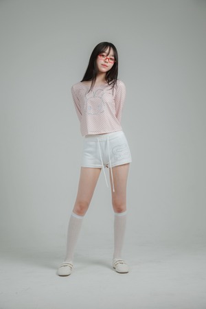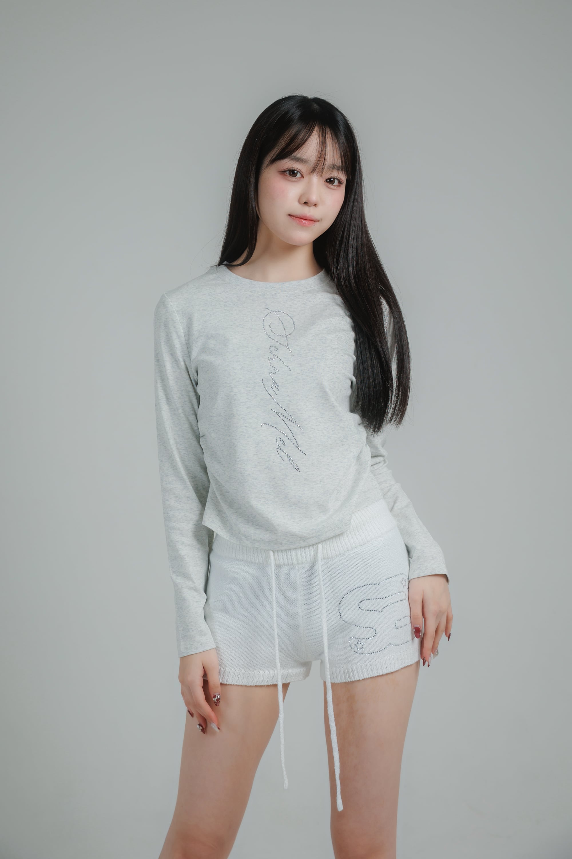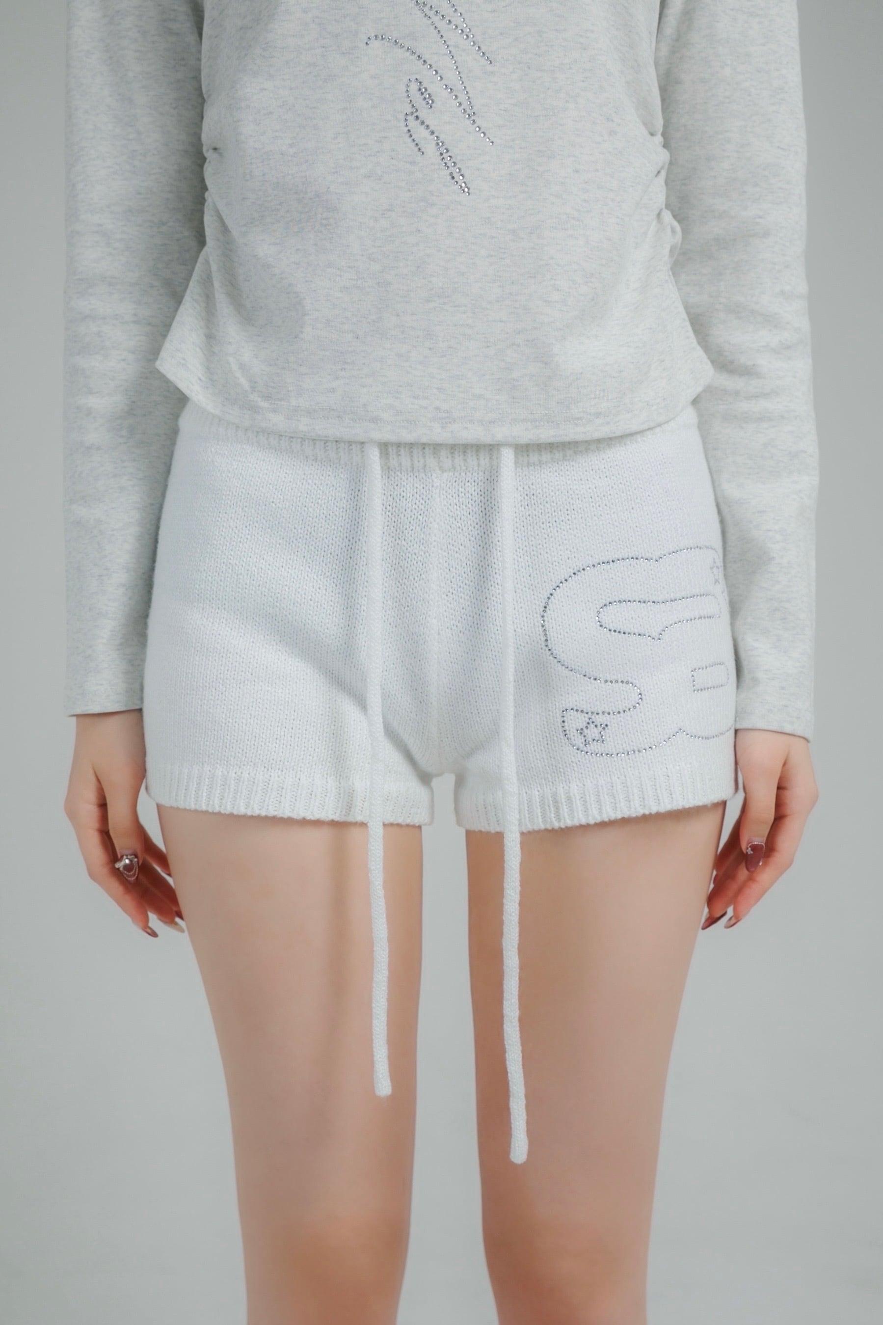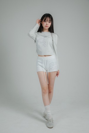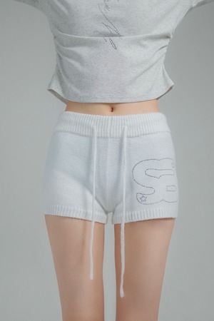 SMロゴをラインストーンで大胆に。シンプルながらも強い存在感を演出。