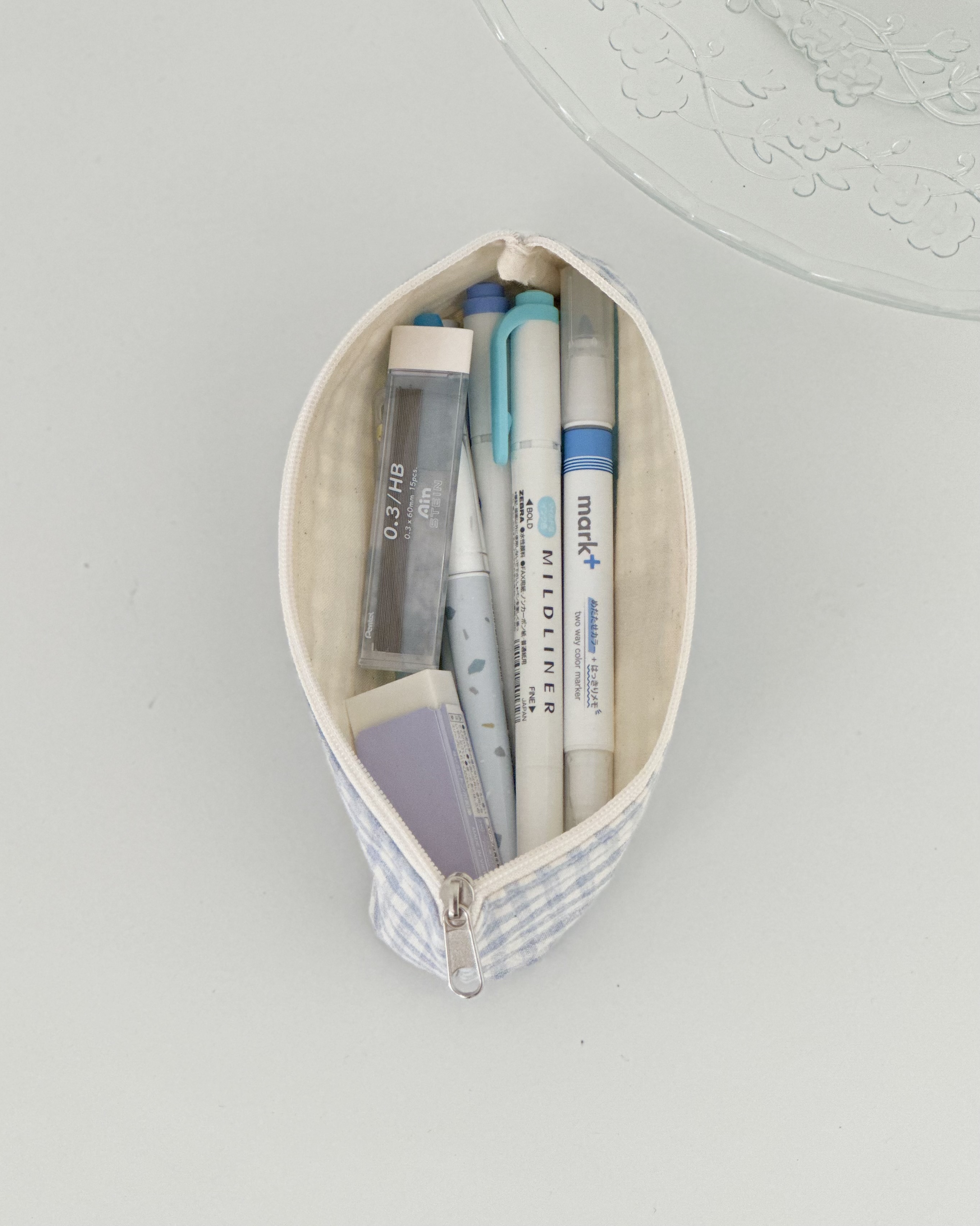 底マチ付きで、ペン・定規・消しゴムなどの